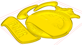 I built the horn as a domed relief, then copied and flipped it so the two halves would glue together as a separate piece. The scroll will also be a separate layer. The bevelled lettering was the last step, making the file ready for tool pathing. Now the file is ready to be sent to the MultiCam and routed from a sheet of 1.5" 30 lb Precision Board.