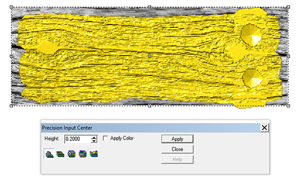 I then modified the rectangle relief by raising the lettering outline. It protruded through the woodgrain.